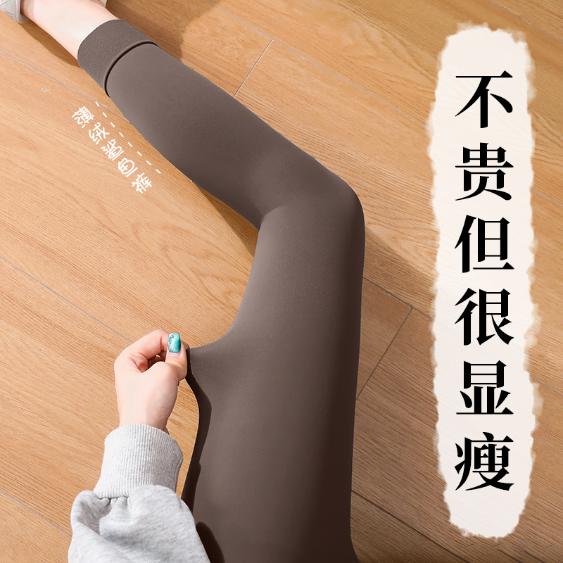 磨毛薄绒鲨鱼裤 2025新款 女外穿高腰提臀大码 瑜伽打底裤 九分 秋冬季