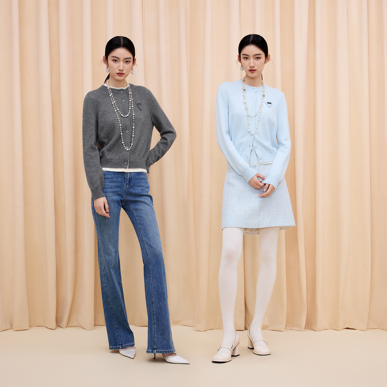 朗姿集团LIME莱茵兔绒混纺针织双边领开衫 新 柔软宽松休闲风25冬季