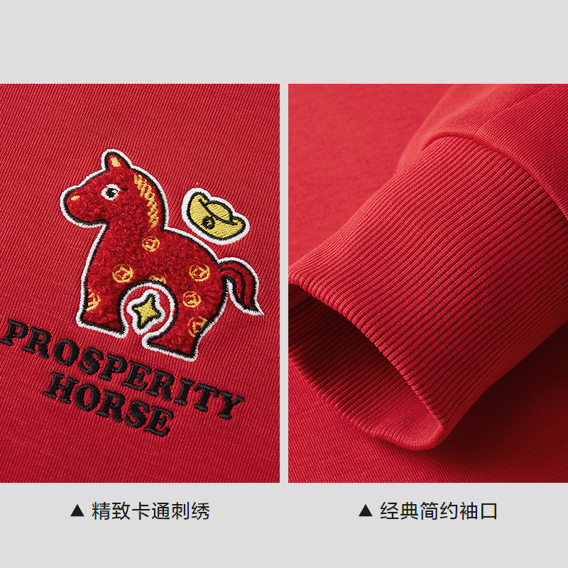 HLA 卫衣男 海澜之家马年贺岁26春秋新圆领卡通刺绣红色五明治长袖