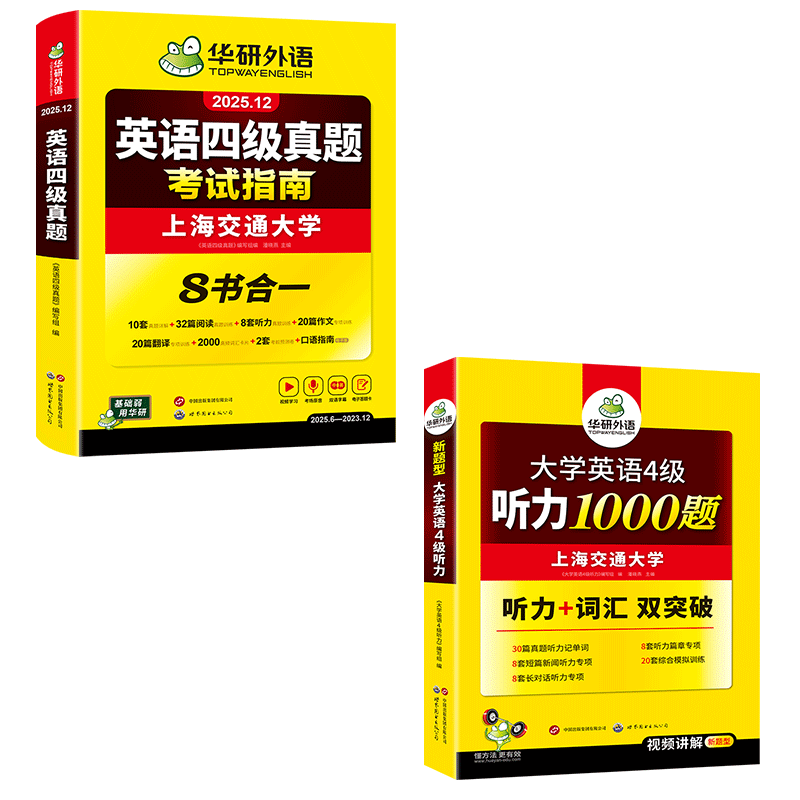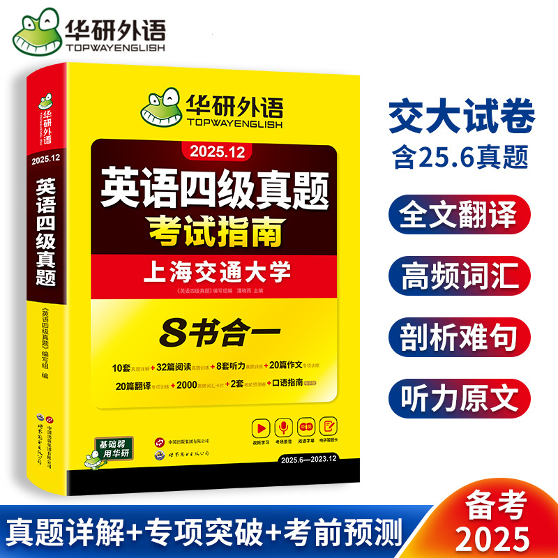 华研外语备考2025年四级英语考试真题指南听力全套大学英语四级历年真题试卷高频核心单词汇阅读理解作文专项训练学习资料cet46级