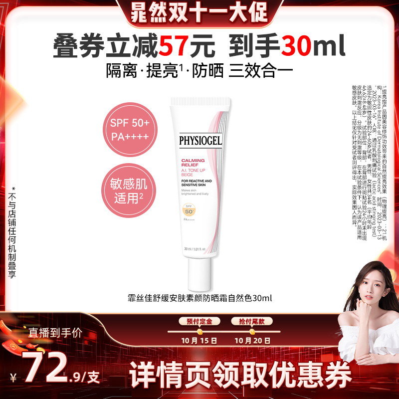 霏丝佳舒缓安肤素颜防晒霜提亮自然色SPF50 晁然双11预售