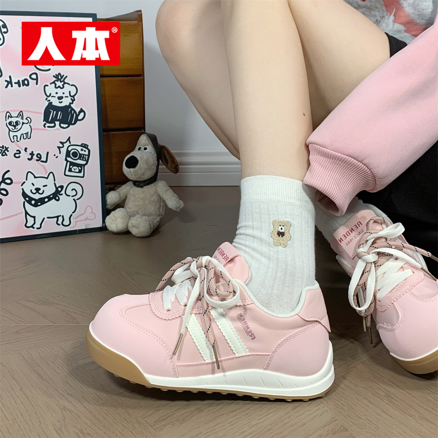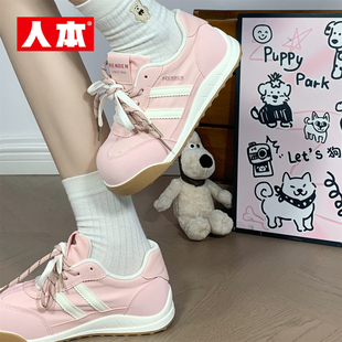 女2025秋季 板鞋 新款 休闲韩版 子女 少女心芭蕾鞋 人本粉色复古德训鞋