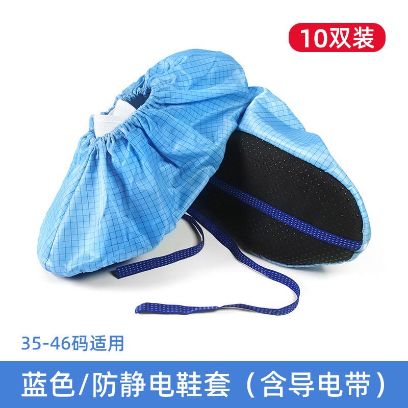 防静电鞋 套网格蓝导电条电子无尘车间实验洁净室用带防滑底布脚套