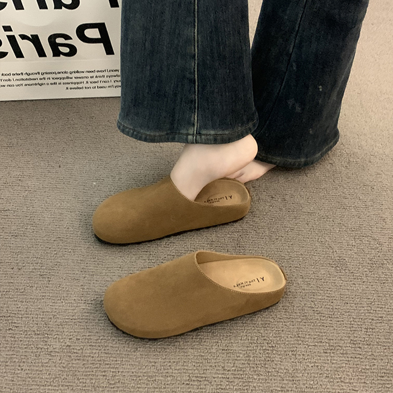 秋冬晚晚博肯鞋 女外穿2025新款 女一脚蹬丑萌包头半拖鞋 厚底勃肯鞋