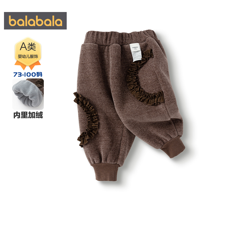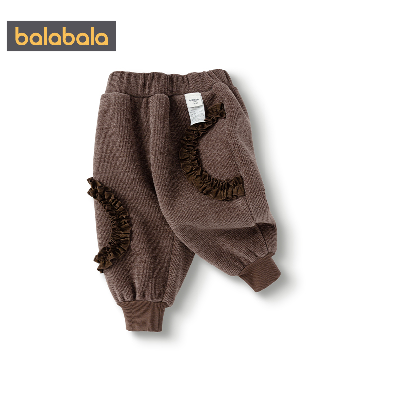 儿童荷叶边休闲长裤 巴拉巴拉女童加绒运动裤 童装 子秋冬款 萌 宝宝裤