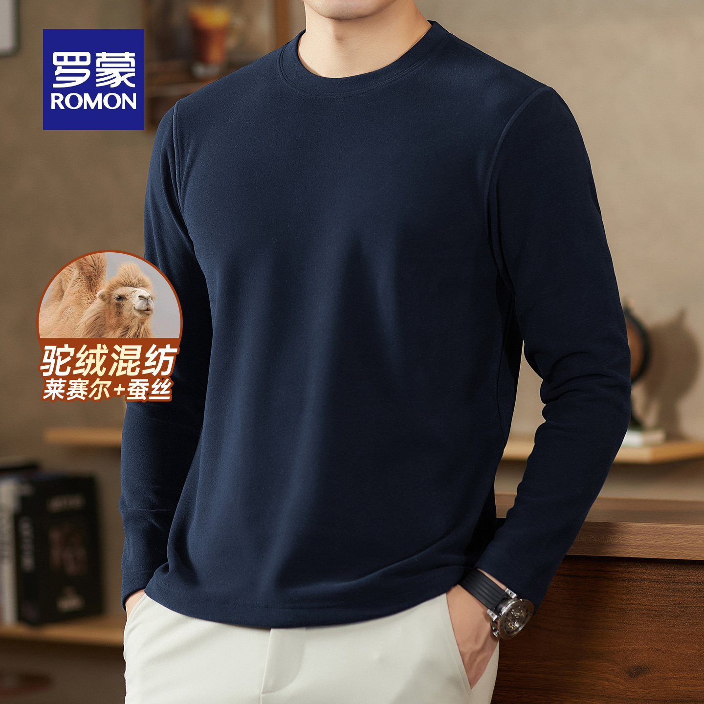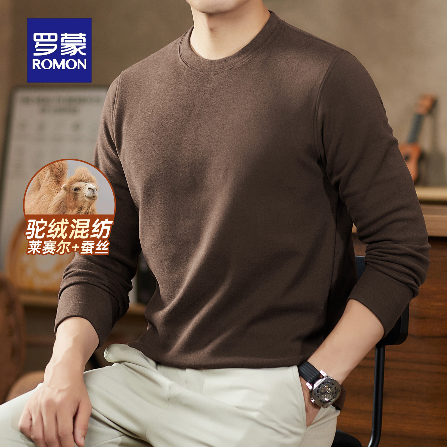 罗蒙男士 莱赛尔 休闲长袖 T恤2025冬季 加绒圆领卫衣 新款 骆驼绒