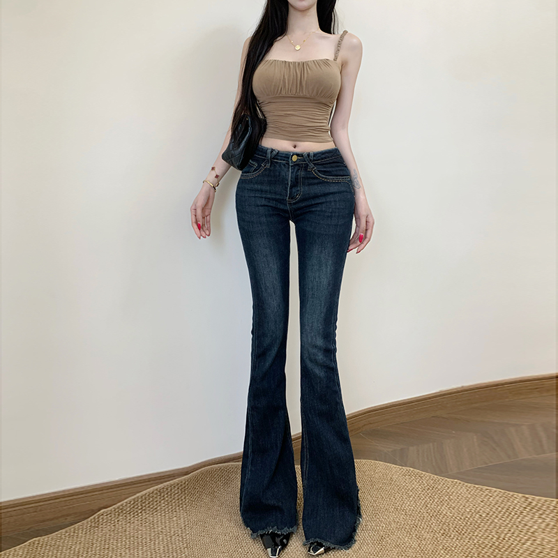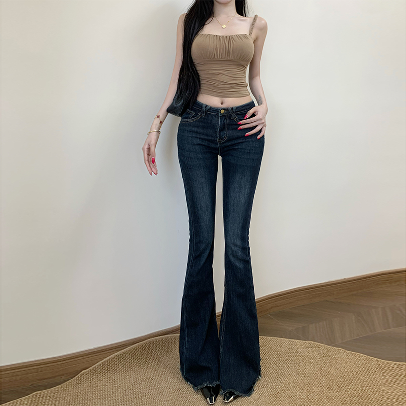 女2025新款 子女装 秋季 复古喇叭裤 504897 铆钉毛边微喇裤 三福牛仔裤