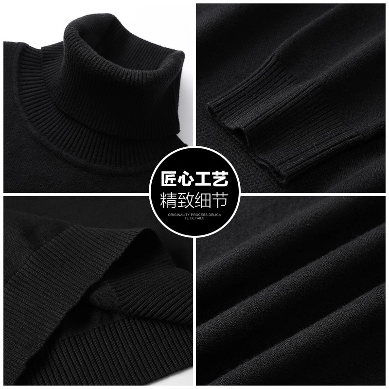 纯色内搭针织衫 新款 保暖翻领毛线衣服男 加绒加厚冬季 高领毛衣男士