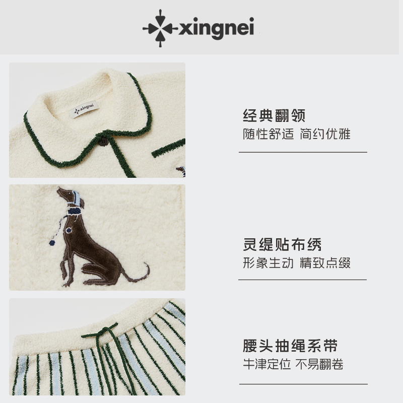 可外穿加厚家居服 2025新款 形内睡衣女条纹加绒半边绒套装 保暖冬季