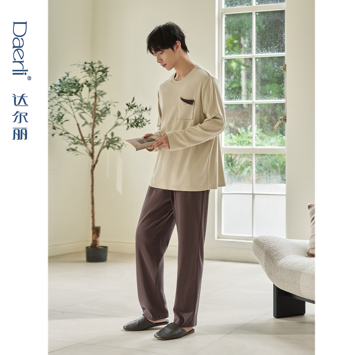 睡衣男款 全棉家居服套装 纯棉长袖 时尚 春秋2025年新款 都市丽人男士
