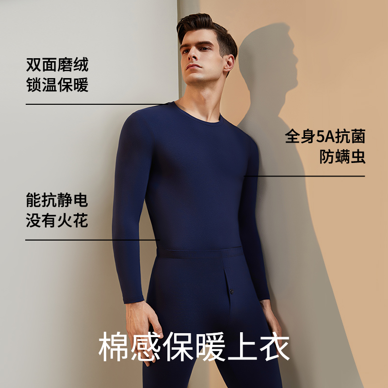 保暖内衣打底衣贴身内搭单件男款 冬季 纯棉秋衣上衣薄款 大嘴猴男士