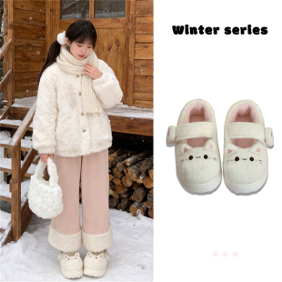 魔术贴豆豆鞋 防滑时尚 玛丽珍棉鞋 舒适女ins风冬软萌小猫lolita鞋