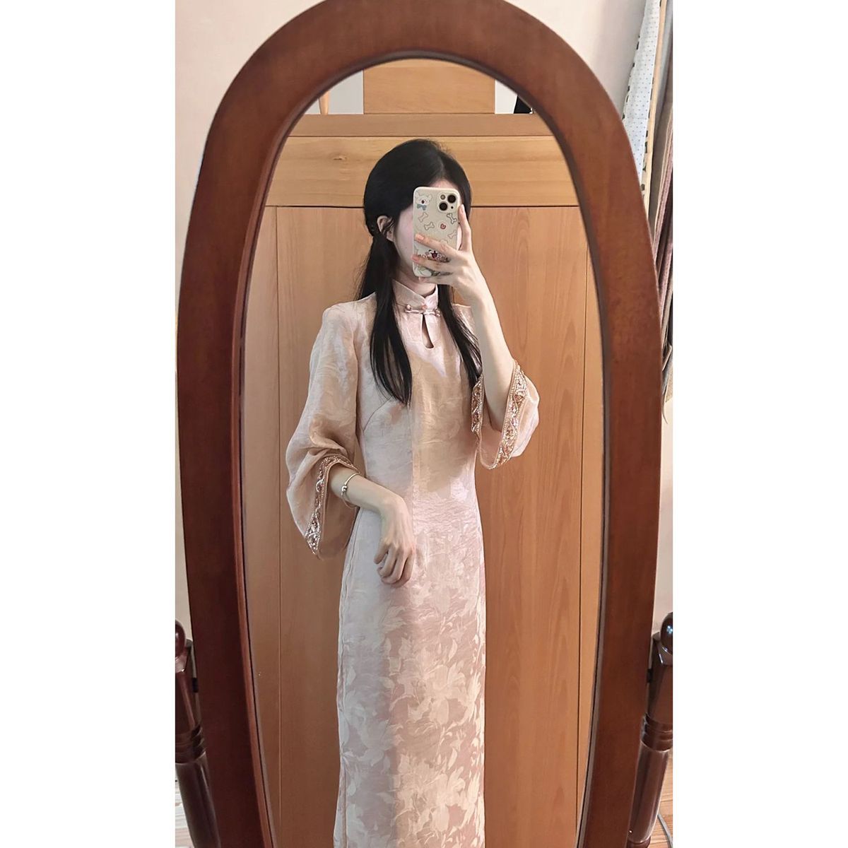 连衣裙小个子 国风女装 奥黛新中式 旗袍订婚礼服女夏平时可穿年轻款
