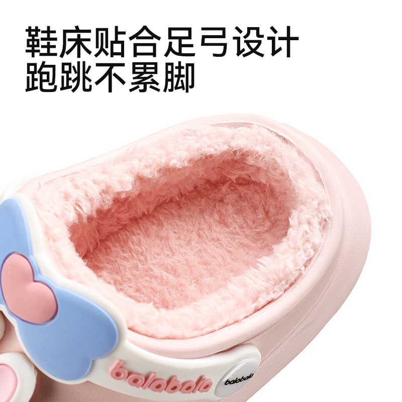 室内卡通加绒加厚防水宝宝拖鞋 巴拉巴拉儿童棉拖鞋 男童女童冬季