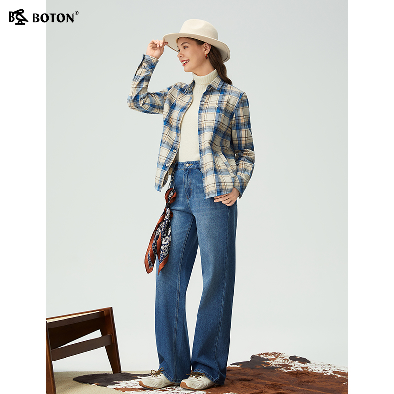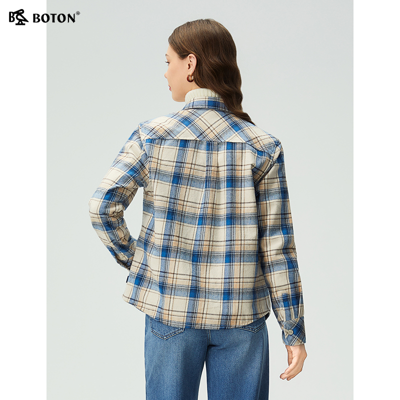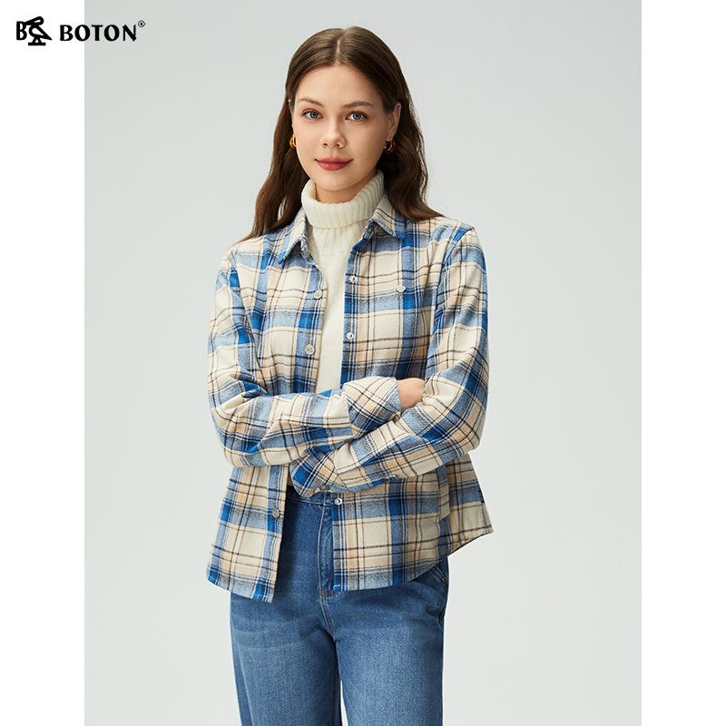 修身 波顿秋季 磨毛格子全棉衬衫 翻领长袖 通勤休闲百搭衬衣舒适 新款