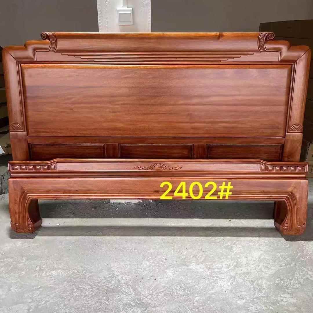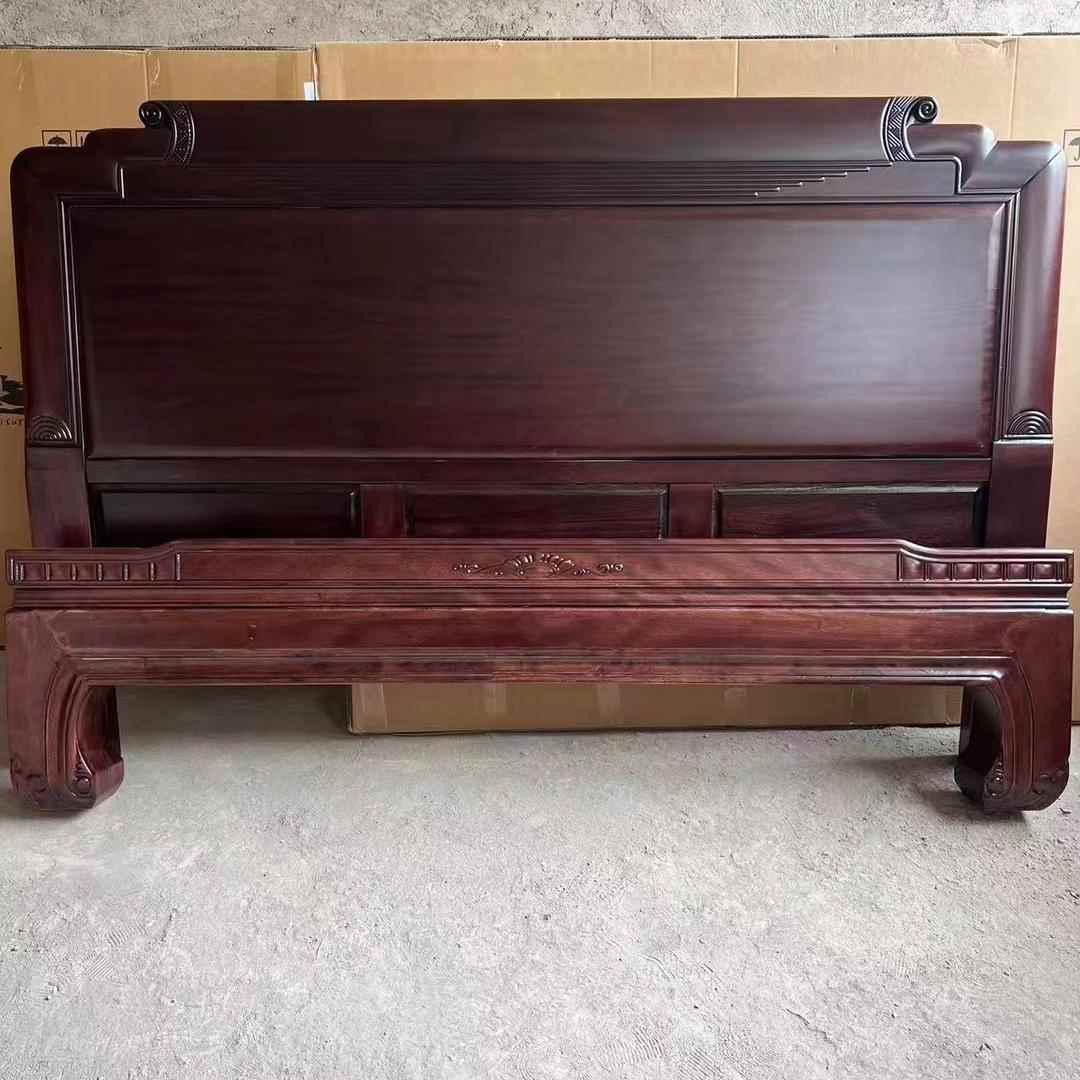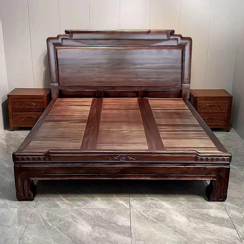 官帽款 家用榫卯全实木床印尼菠萝格木榫卯工艺古典雕花1.8米婚床