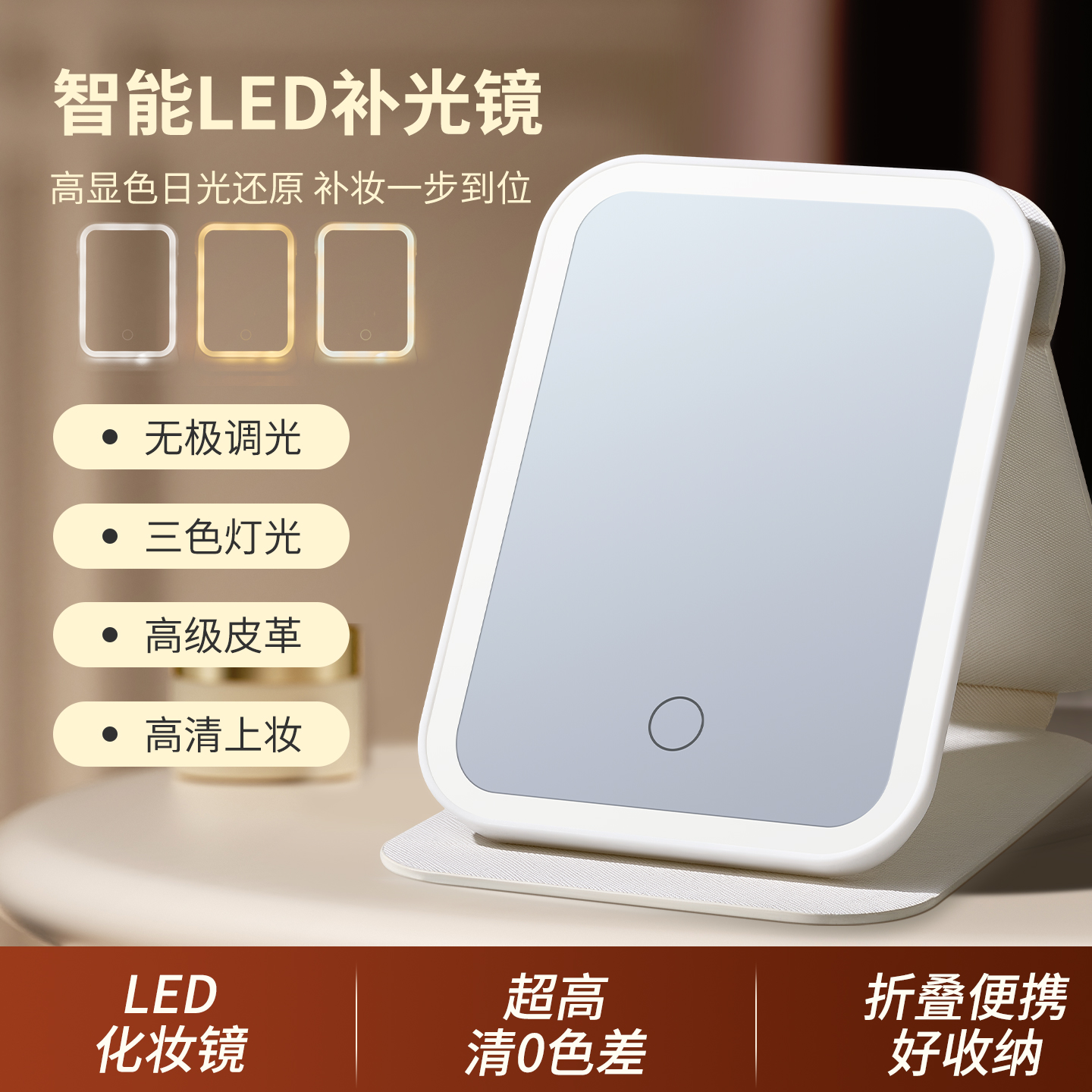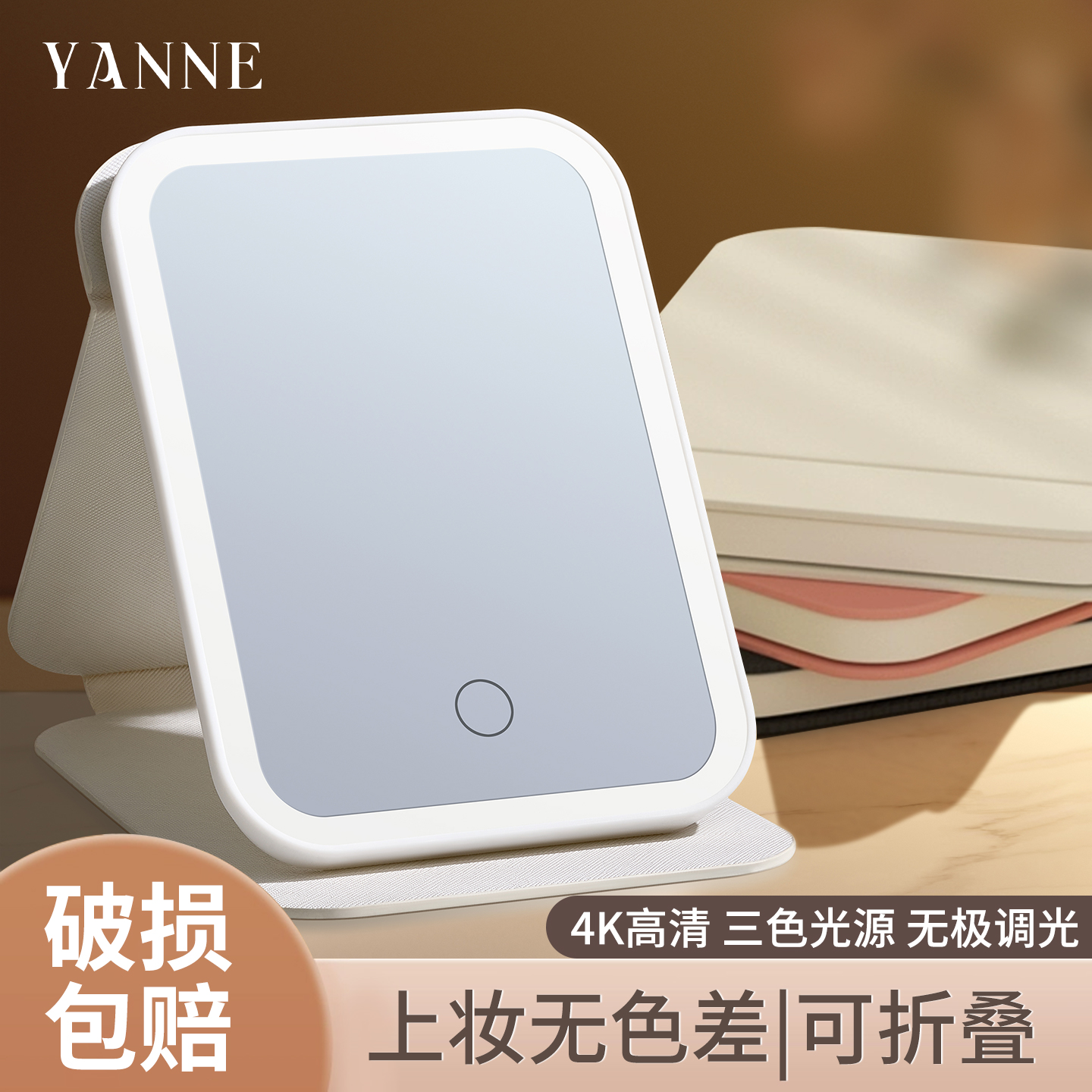 艳嫩化妆镜带灯LED便携折叠觅光台式 桌面宿舍家用镜子旅行美妆镜