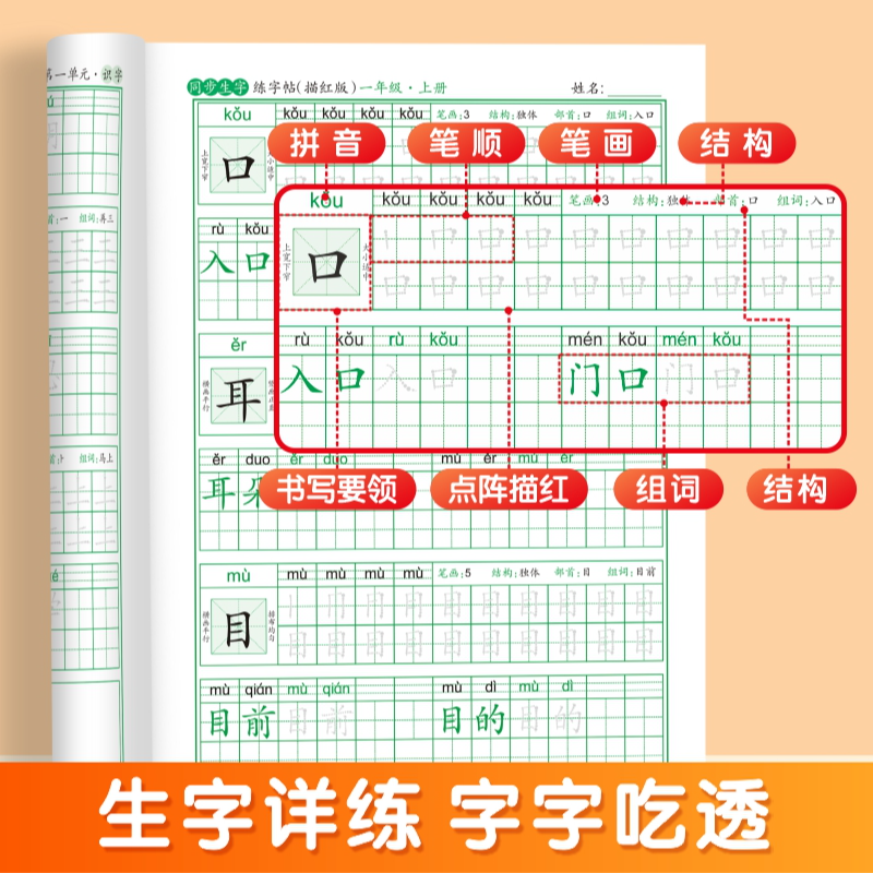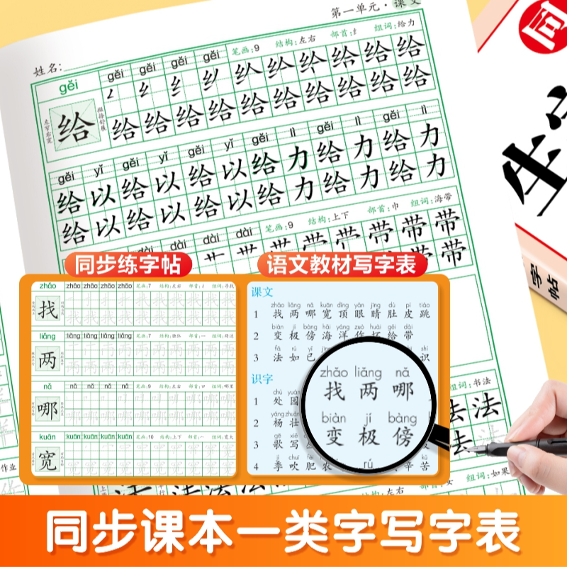 2025秋一年级二年级上册下册同步生字练字帖同步点阵生字练字帖描红本练字帖小学生专用每日一练儿童练字笔画笔顺练字本生字描红本