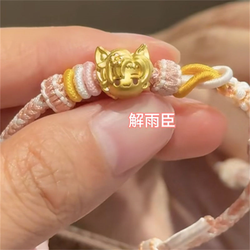 I足金999小金珠圆珠黄金光面珠手链两世欢转运生日礼物 特大福
