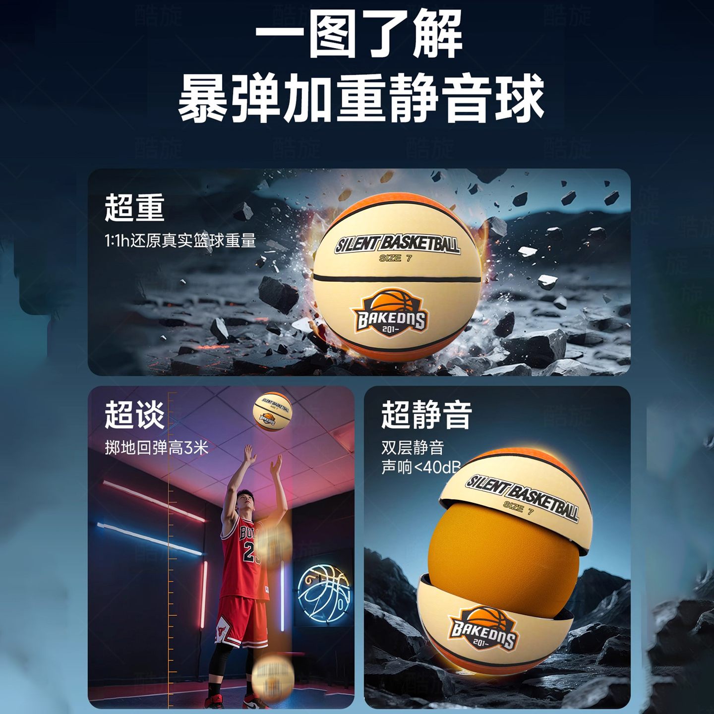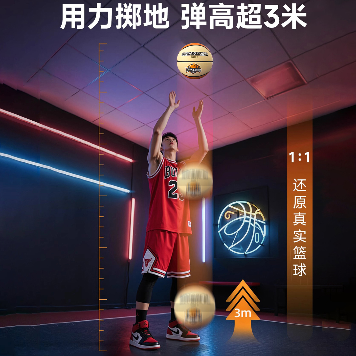 室内无声静音球静音篮球不掉渣布套款 儿童室内拍拍球高弹力7号球
