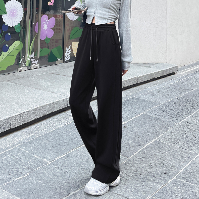 女秋季 休闲阔腿裤 2025新款 直筒裤 宽松大码 KMV真维斯黑色运动卫裤