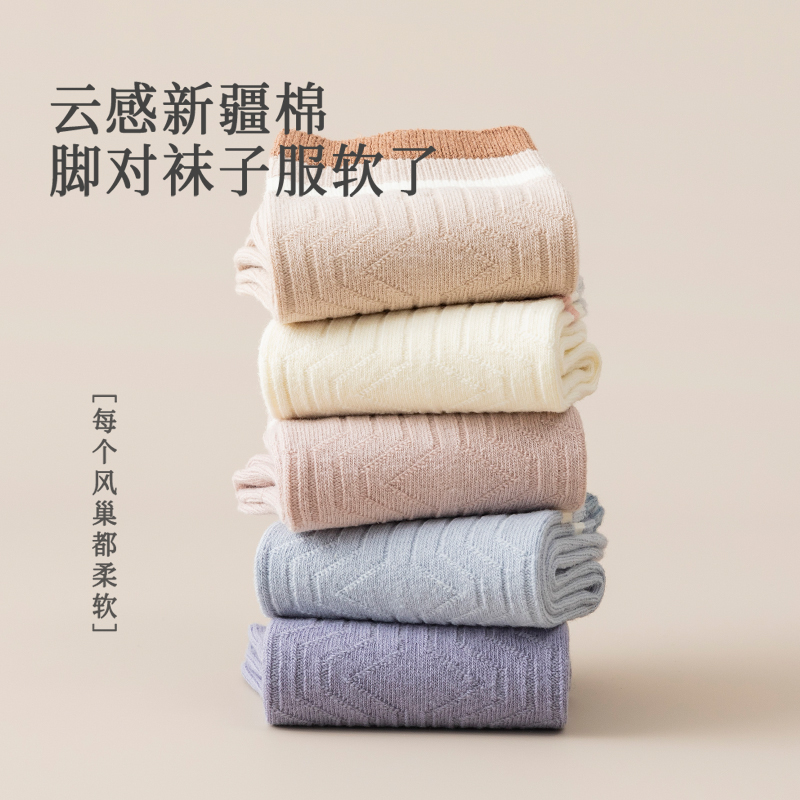 中筒秋冬季 袜子男款 纯色短白袜女士运动长袜吸汗透气 新疆棉