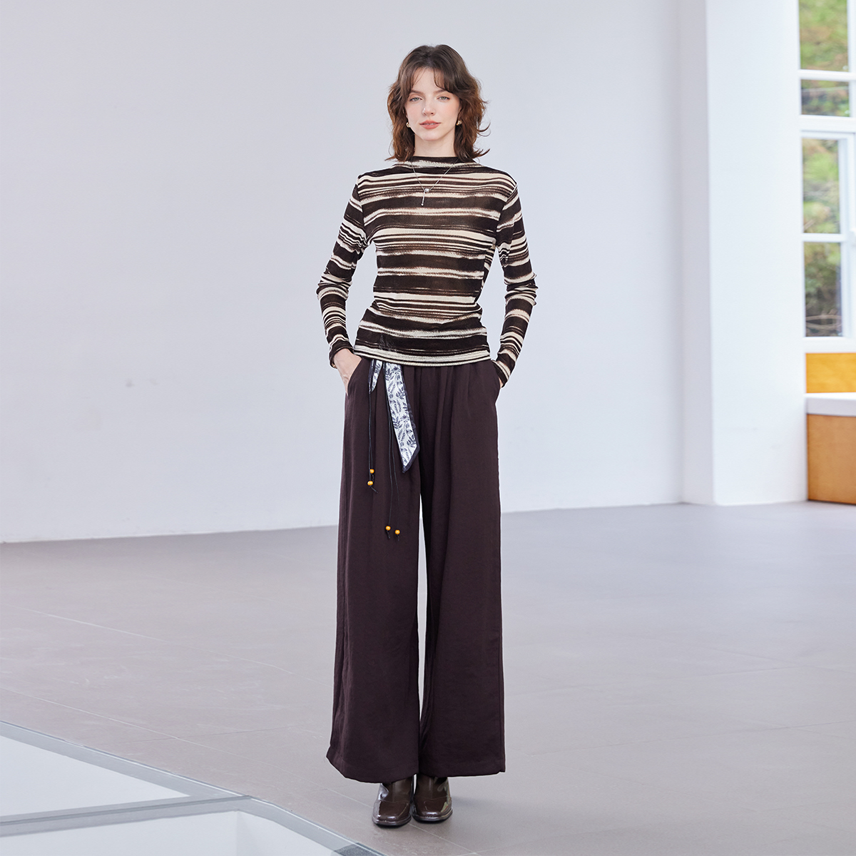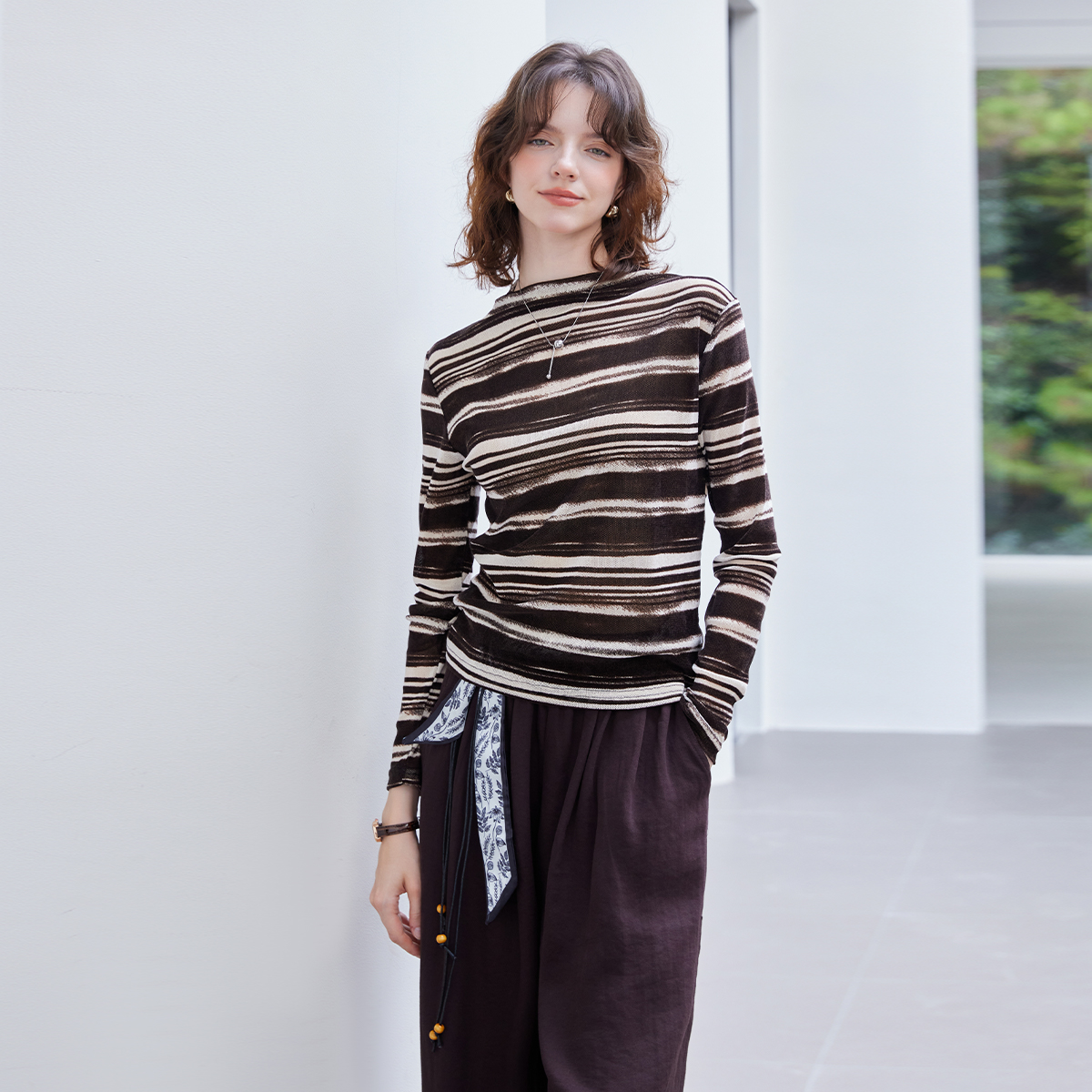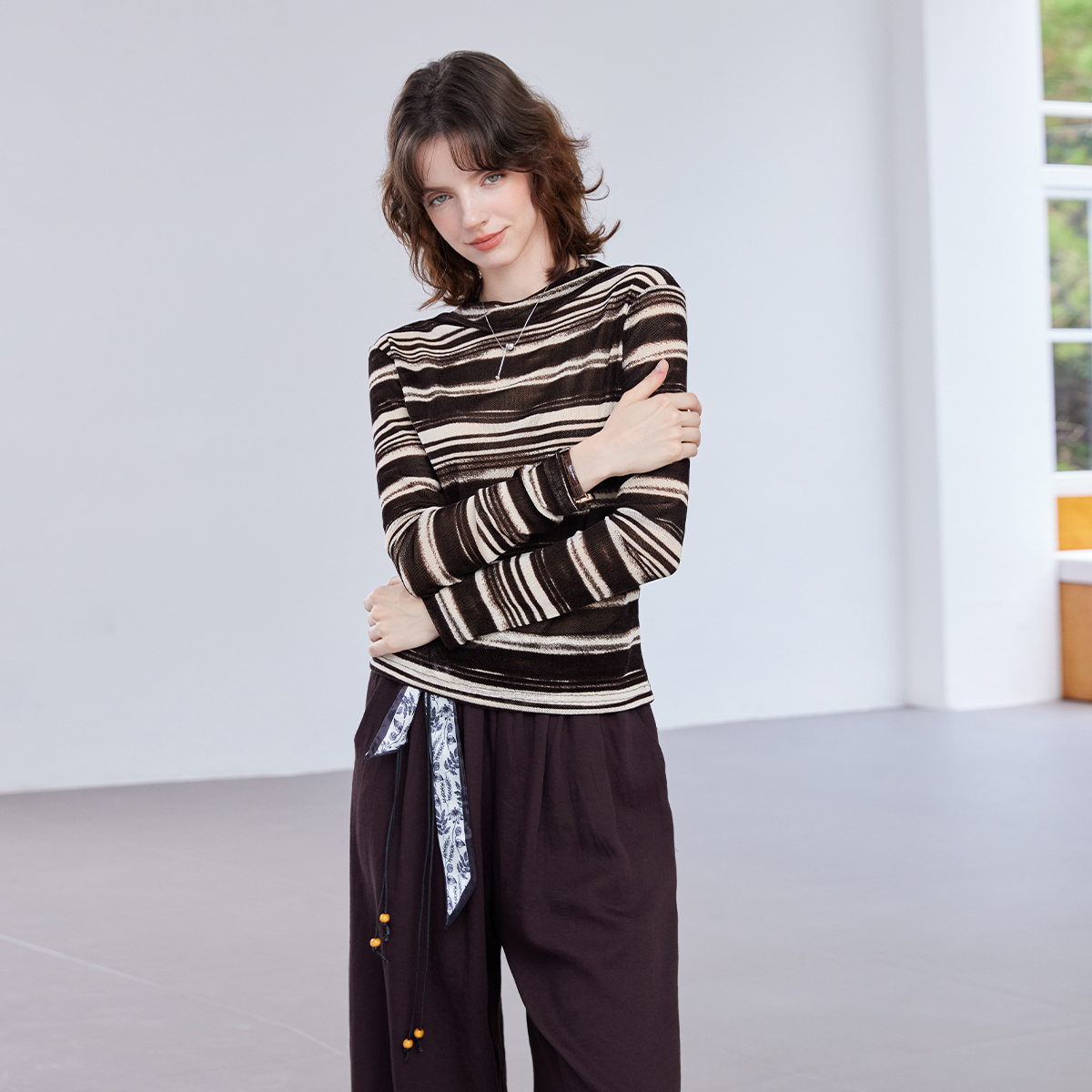 女 针织打底上衣设计感气质显瘦针织衫 纳纹25秋季 撞色条纹长袖