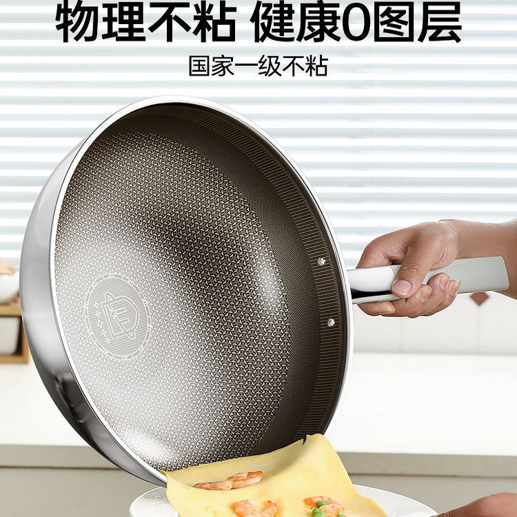 苏泊尔不粘锅家用炒锅304不锈钢蜂窝不粘炒菜锅电磁炉燃气灶通用