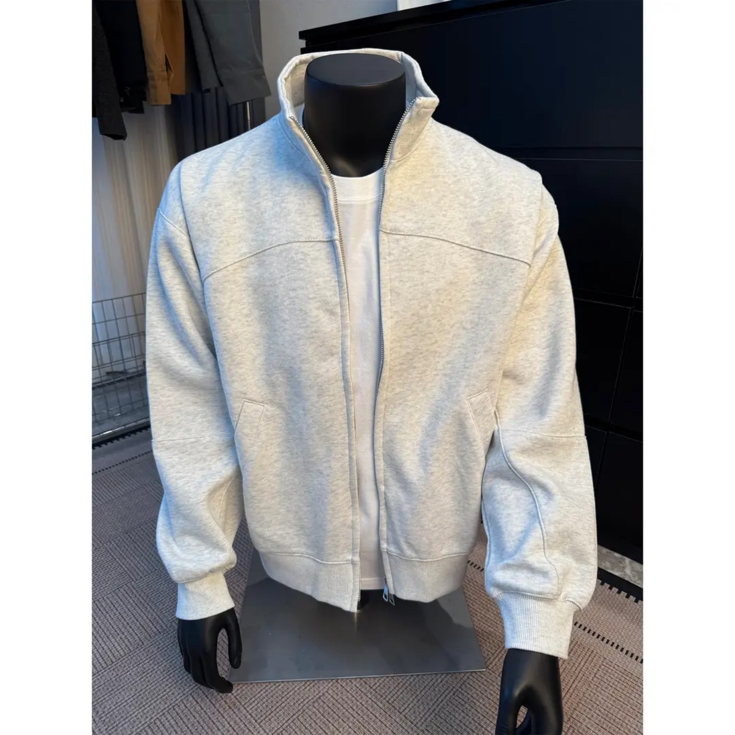 宽松休闲夹克上衣服 拉链开衫 回力外套男春秋新款 加绒连帽卫衣男款