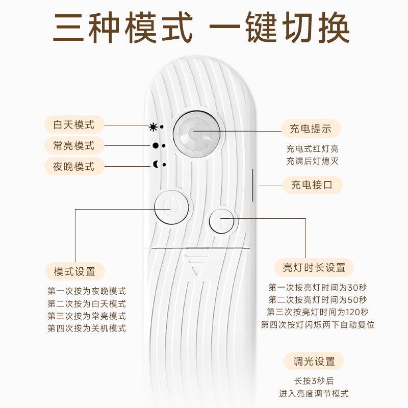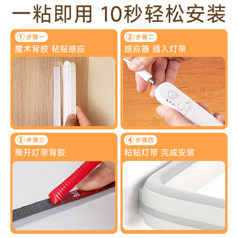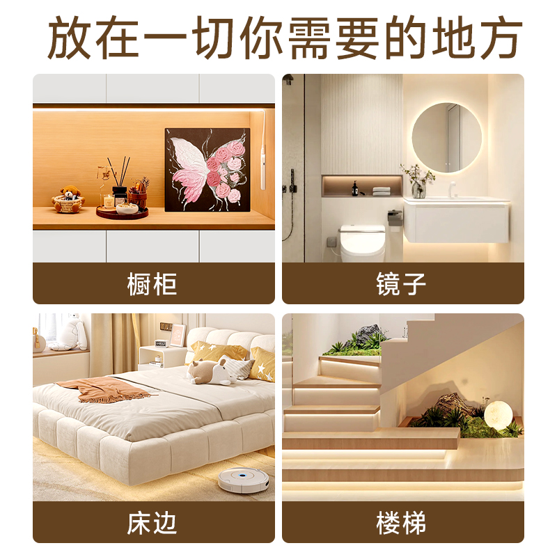 烁宇人体感应led灯带充电无线自粘免插电厨房酒柜衣柜免布线灯条