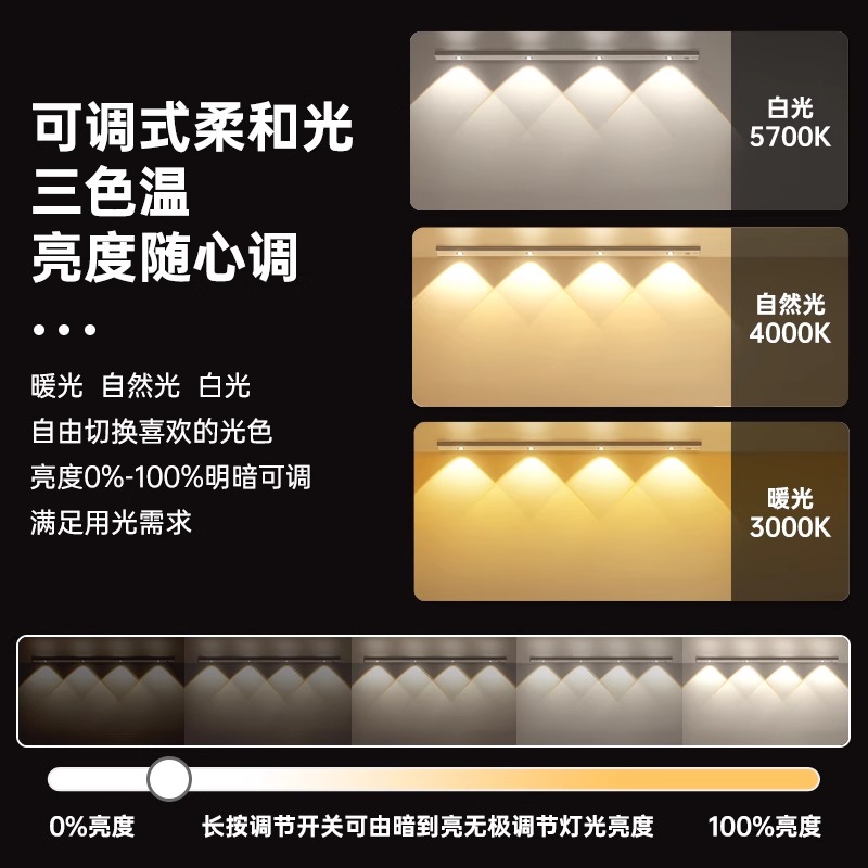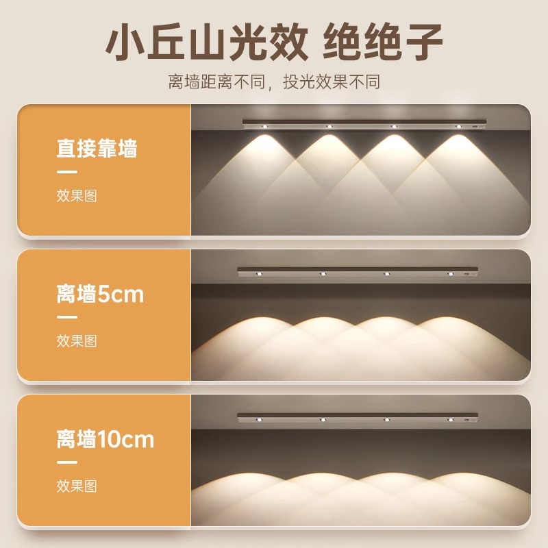 人体感应灯带自粘感应无线磁吸橱柜餐边酒柜展示柜小山丘充电灯条