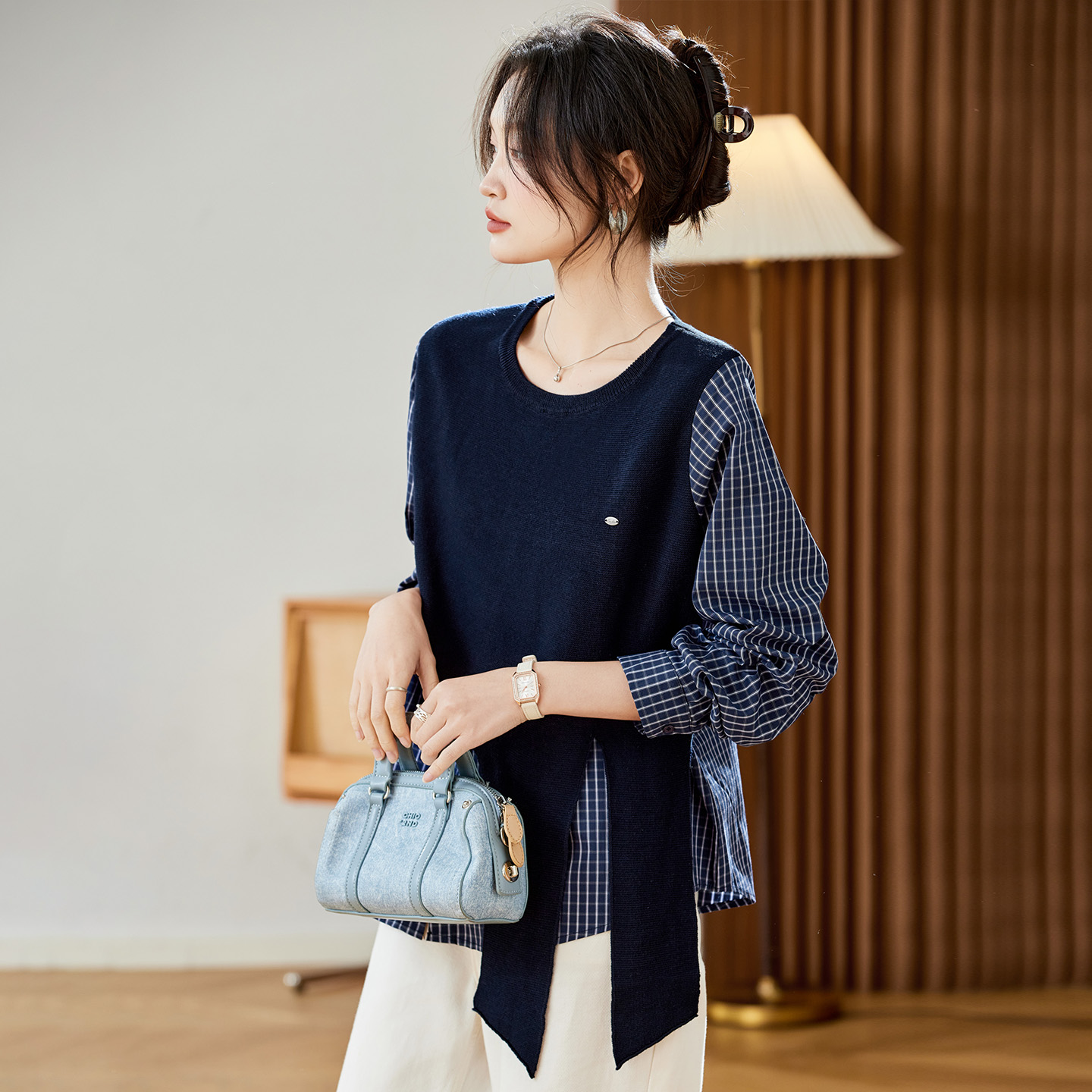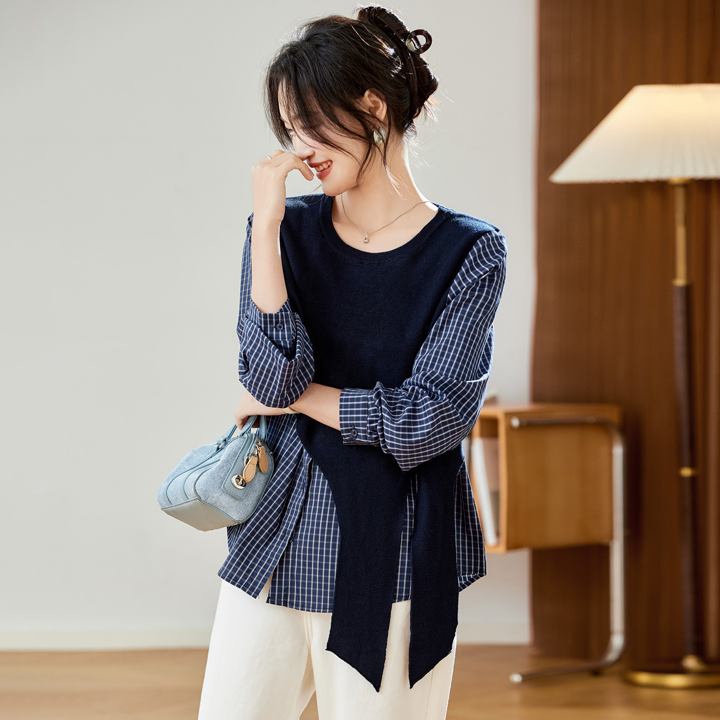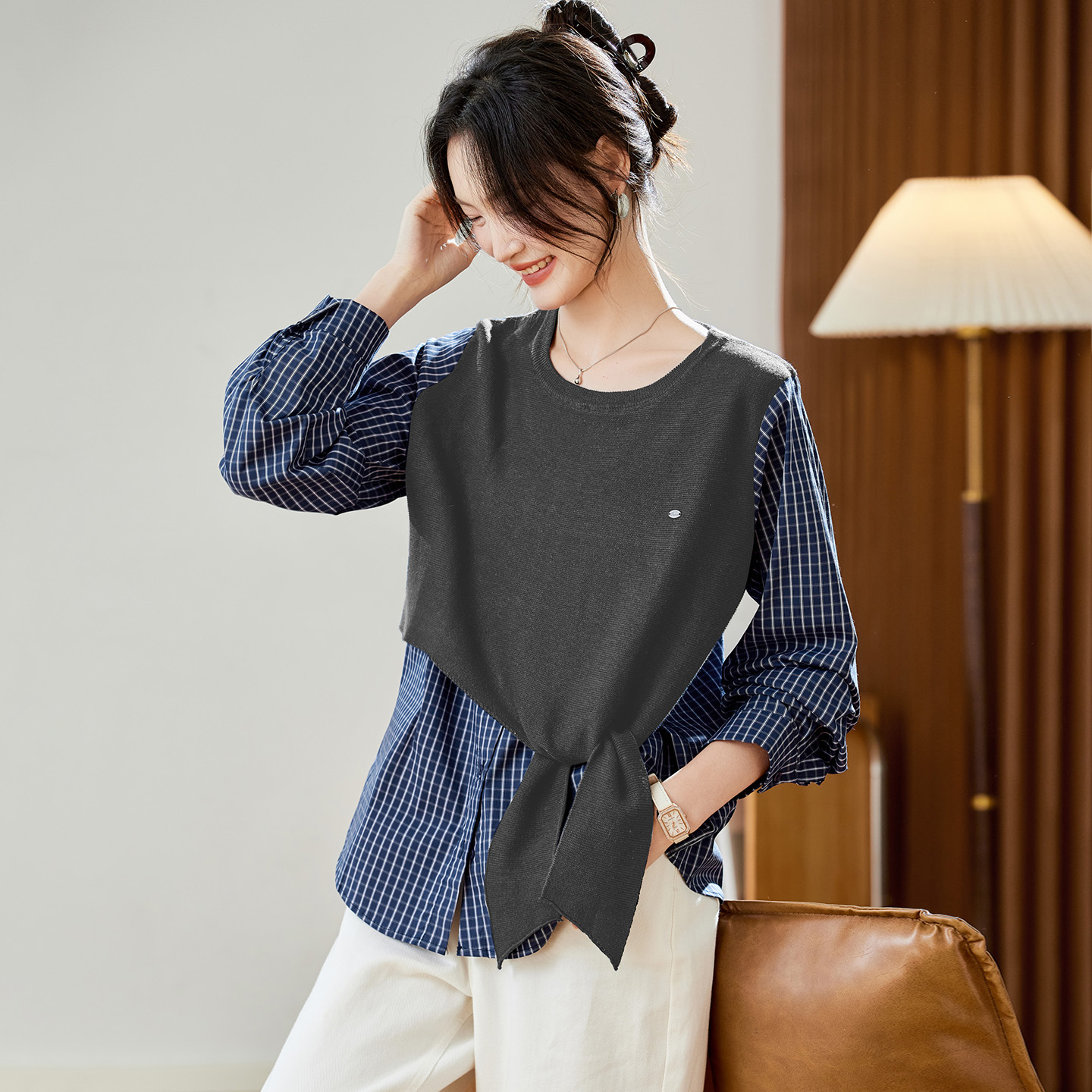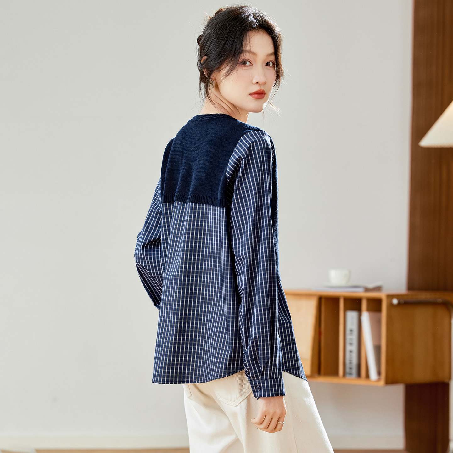 假两件 V领撞色宽松休闲长袖 Unvesno 老钱莱赛尔秋季 衬衫