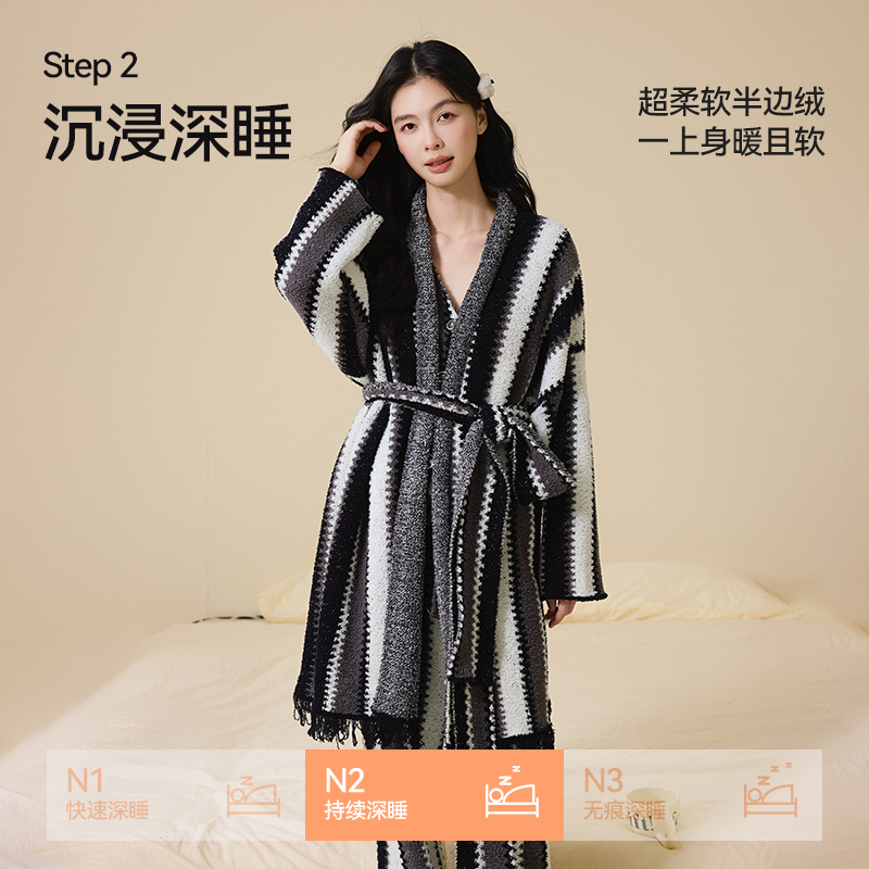 海岛绒可外穿家居服 简约薄款 睡衣女秋冬季 保暖珊瑚绒女士睡衣套装