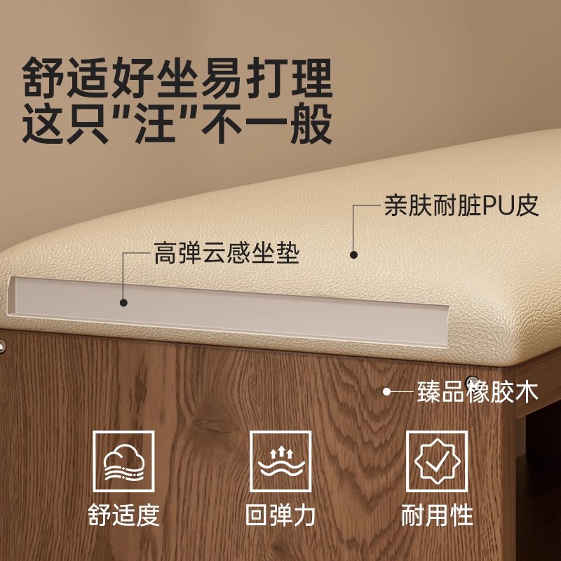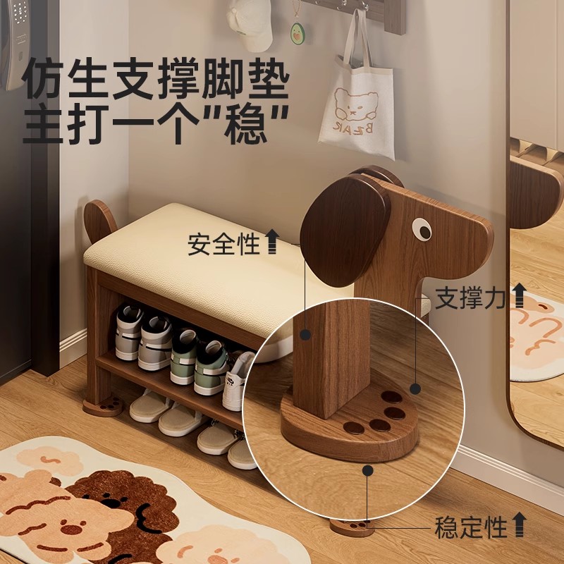实木小狗换鞋 柜可爱创意入户玄关坐凳一体长条凳 凳门口家用可坐鞋