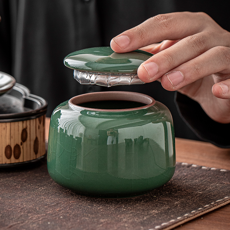 哥窑茶罐陶瓷小号家用密封茶叶罐开片中式 便携茶叶罐子礼盒包装