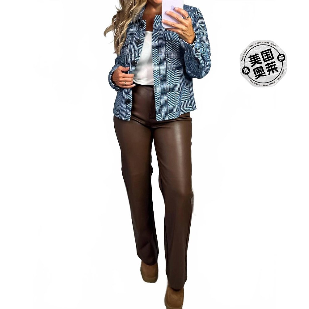 自营lucy 美国奥莱直发 parisAdler人造革棕色长裤