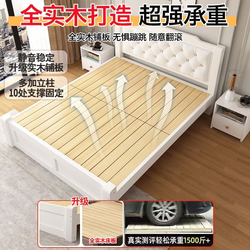新实木床简易现代防潮耐用实木床板木结合双人床定制单人床排骨架