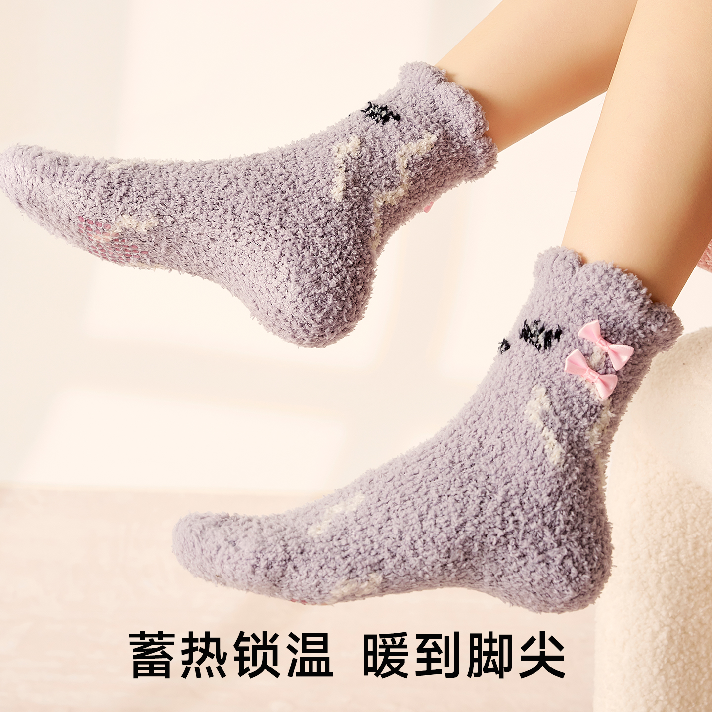派米珊瑚绒袜子女秋冬加绒加厚保暖睡眠袜2025新款 居家地板月子袜