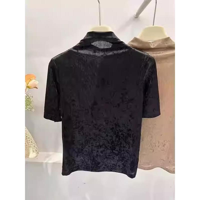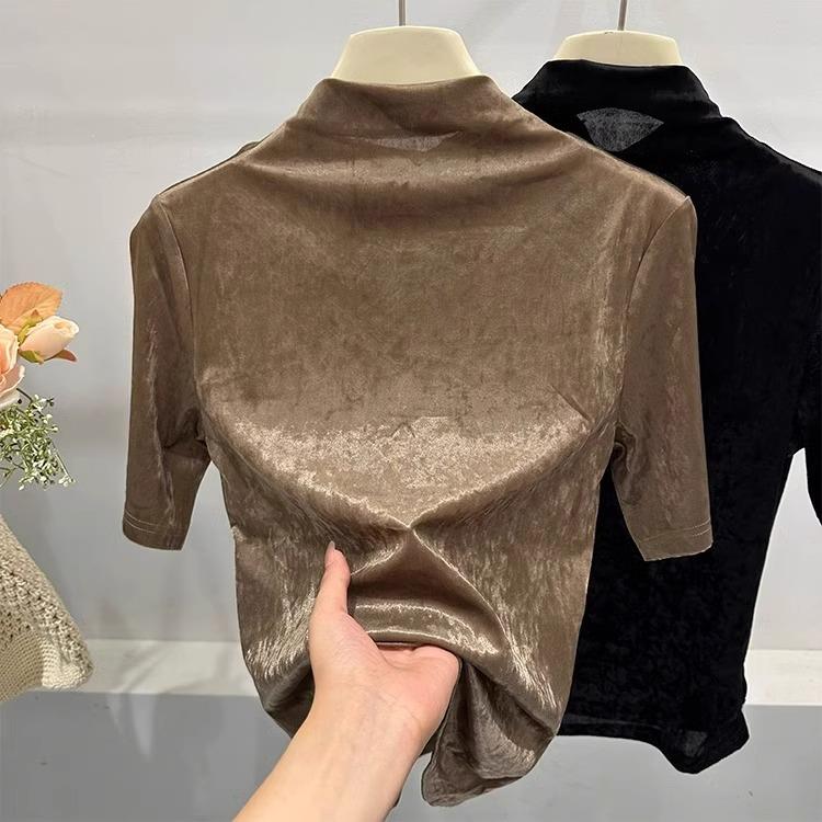 内搭打底衫 气质修身 上1010z T恤女2025新款 秋冬金丝绒半高领五分袖