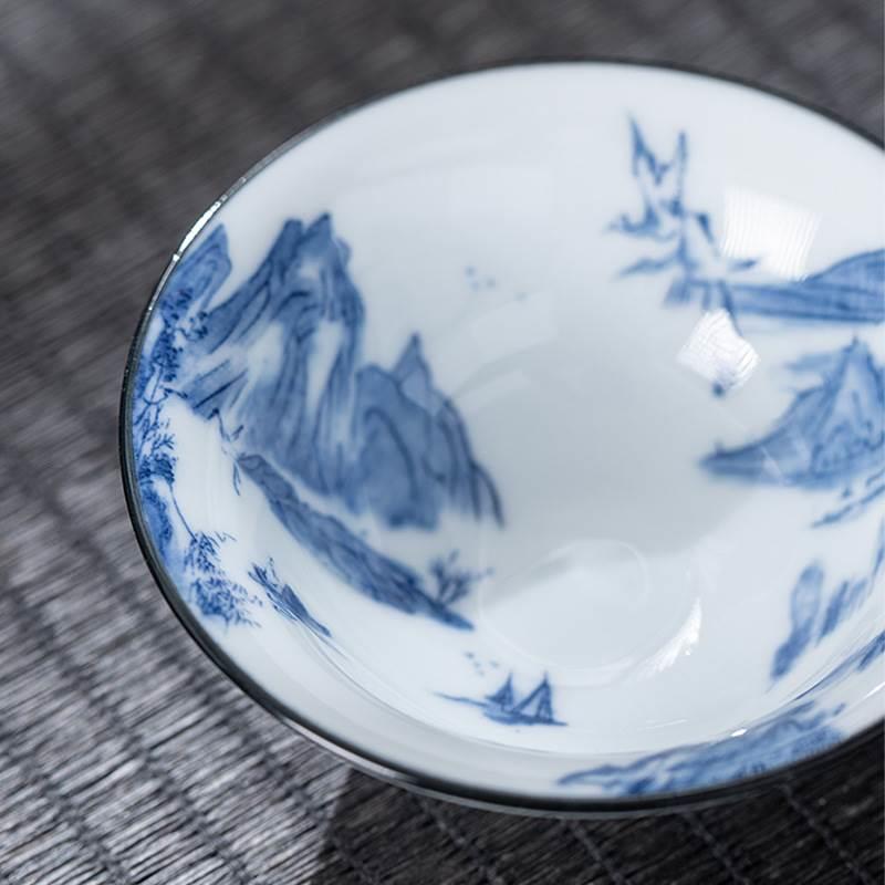 言仓线条小狗泡茶分离杯带滤托陶瓷水杯办公室茶杯生日礼物