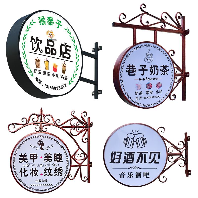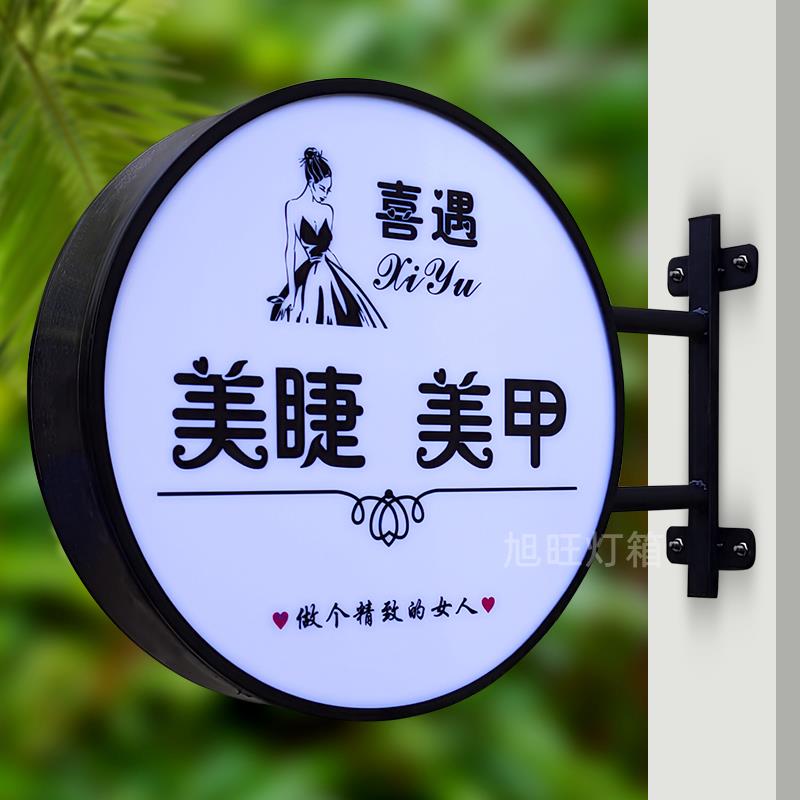 新品 led铁艺灯箱广告牌双面户外美容甲店平面广告招牌发光挂墙式