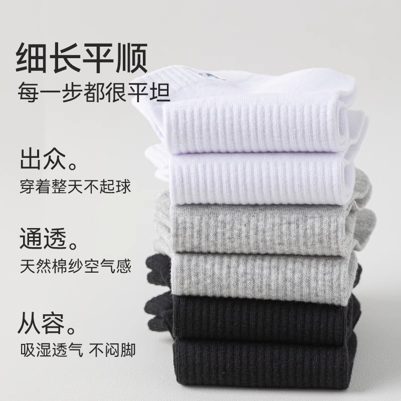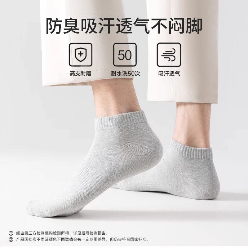 袜子 5双装 春秋款 短袜男 优选好棉 四季