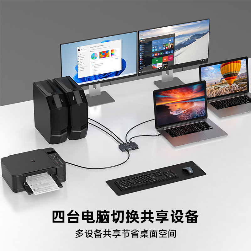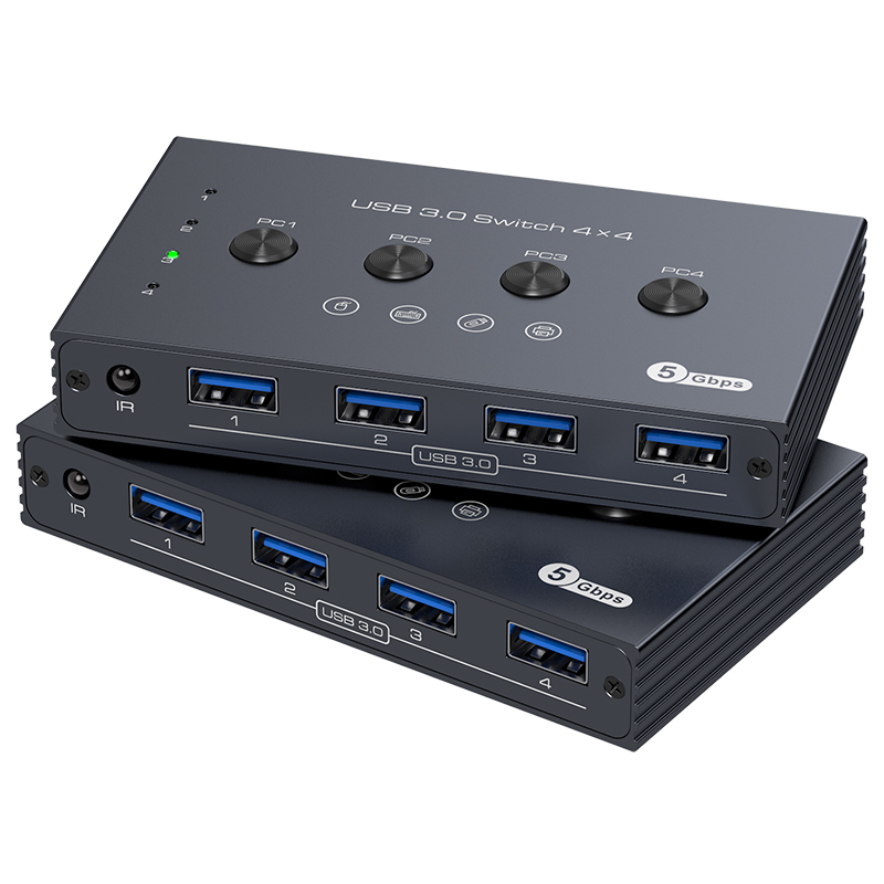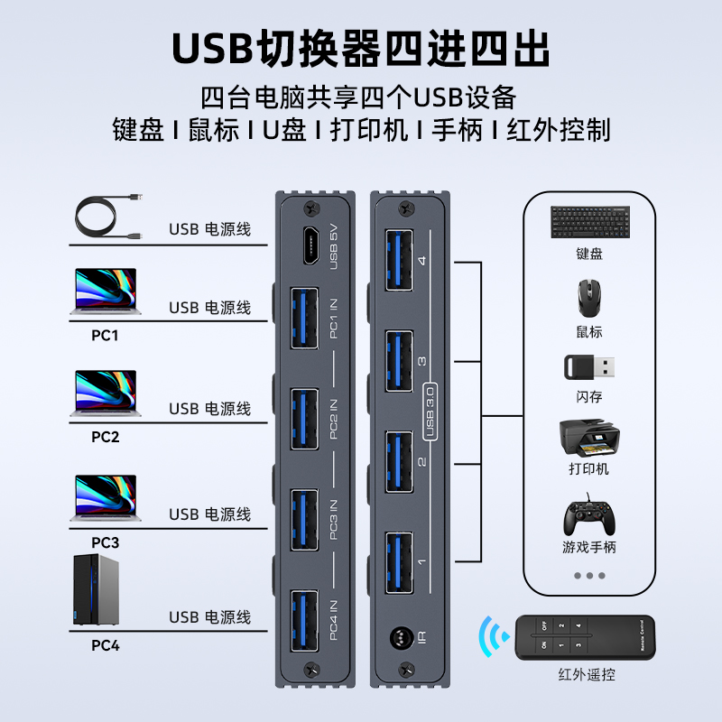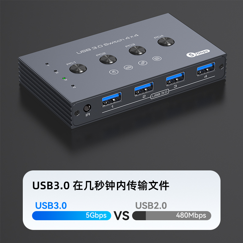 Vpfet usb打印机共享器USB3.0四进四出切换器两台主机共享四个USB设备键盘鼠标扫描仪快速共享切换器