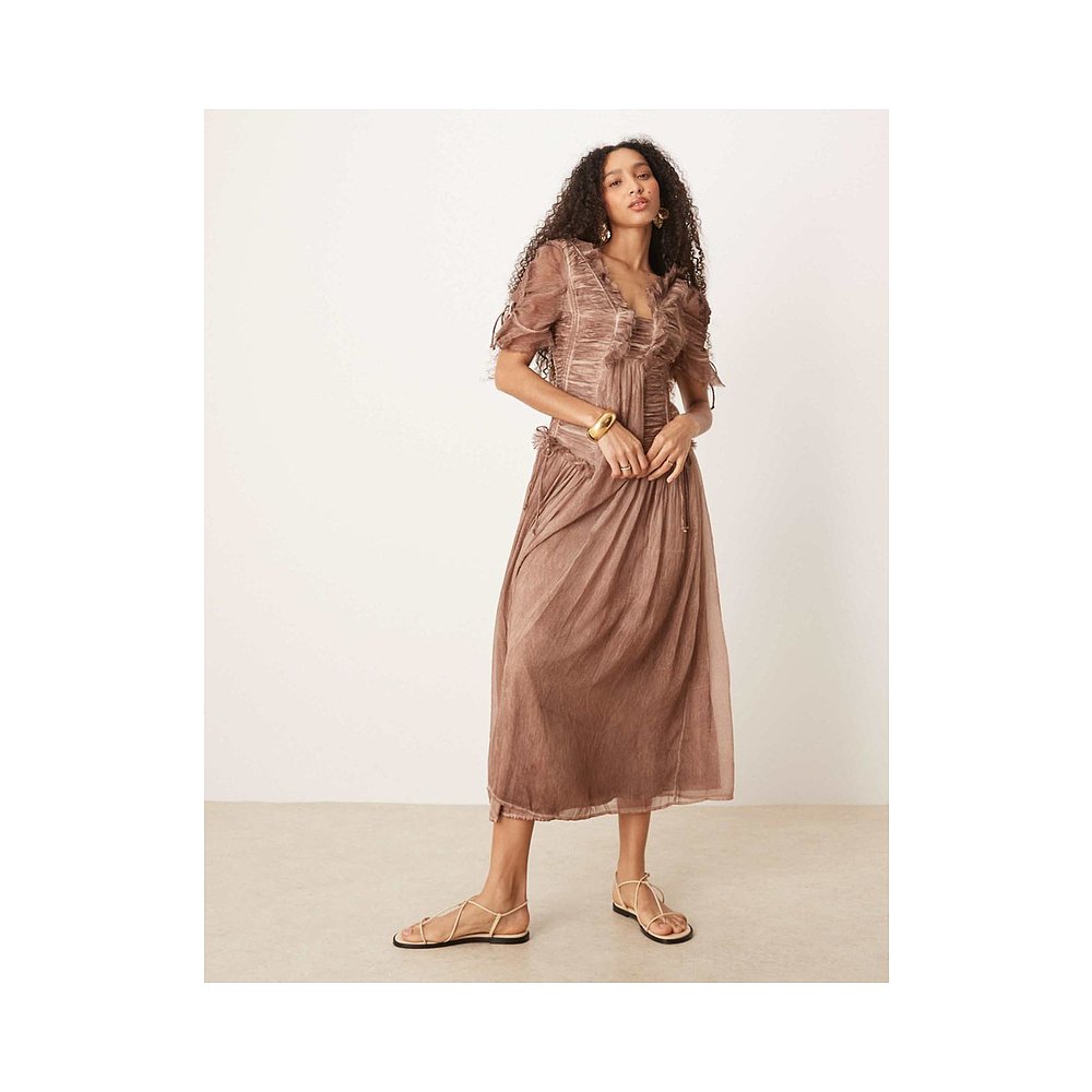 detailing 女士 设计水洗褶皱浅棕中长连衣 香港直邮ASOS 1h可退