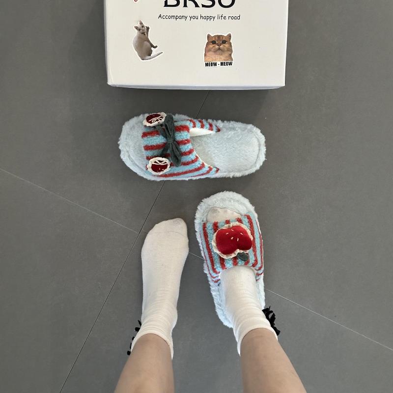 冬女款 毛毛绒保暖鞋 毛拖鞋 家居拖鞋 防滑室内 月子鞋 多巴胺棉拖鞋