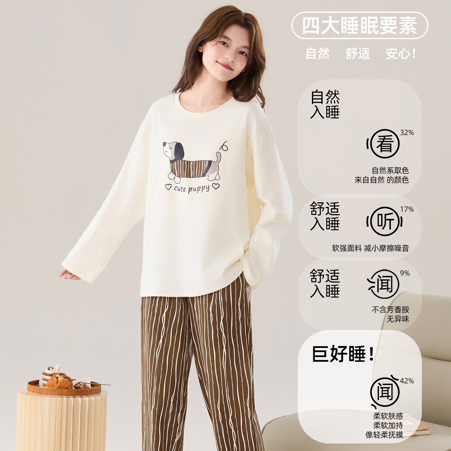 2025新款 可外穿休闲家居服套装 纯棉抗菌长袖 大码 长裤 猫人睡衣女款