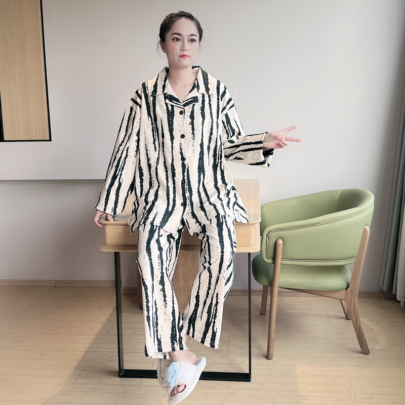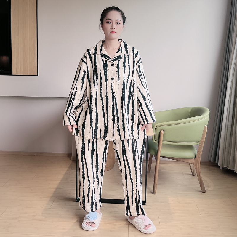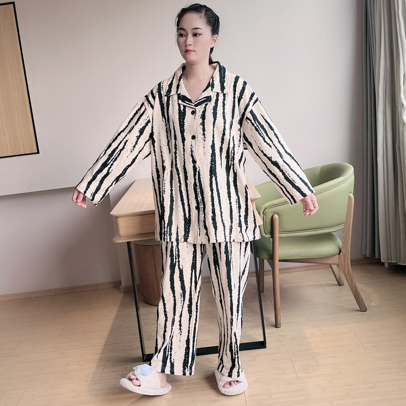可外穿家居服套装 纯棉大码 胖mm200斤厚款 加肥加大码 睡衣女秋冬季