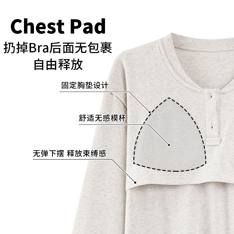 带胸垫休闲家居服套装 长袖 可外穿 针织棉睡衣女士秋冬季 2025年新款