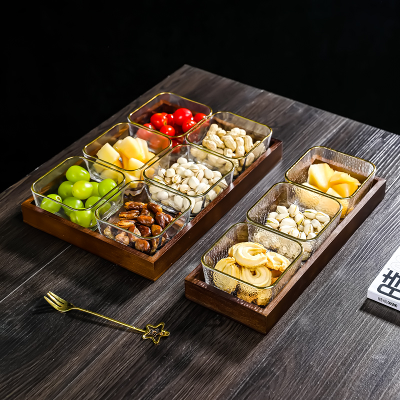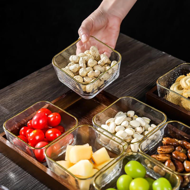 玻璃水果盘客厅家用茶几零食摆放盘轻奢高档点心瓜子坚果干分格盒