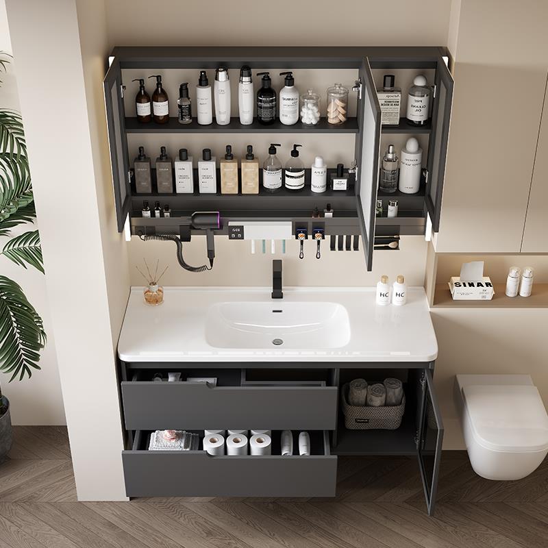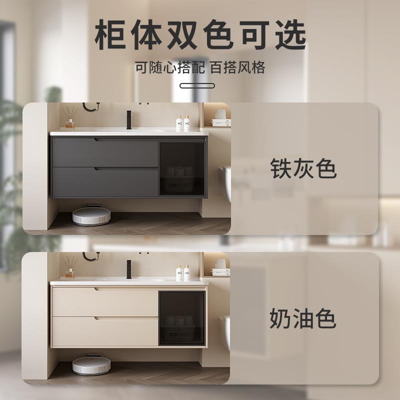现代简约实木浴室柜组合卫生间陶瓷一体盆智能镜柜洗漱台洗手脸池